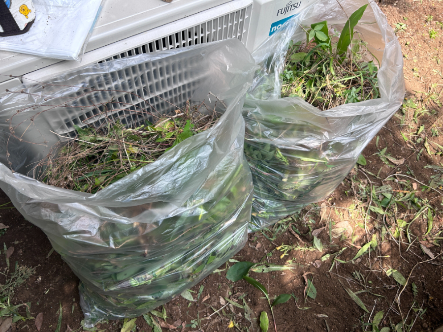 今回は、4袋分の草むしりの作業でした。ゴミの回収はしておりませんが、なるべくまとめて所定の位置にまとめさせていただいたり、高齢で重いゴミを持てない方は、ご遠慮なく仰ってください。